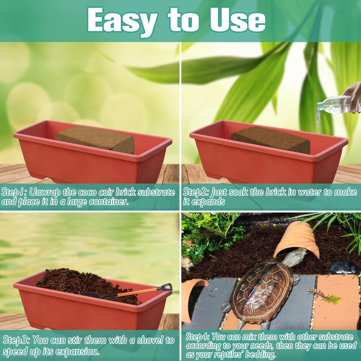 - Minimize Odor & Break Down Waste: Our coconut coir bricks for reptiles can minimize odor and break down waste. It can provide a clean, comfortable living environment for your reptiles. Making them feel more like at home.