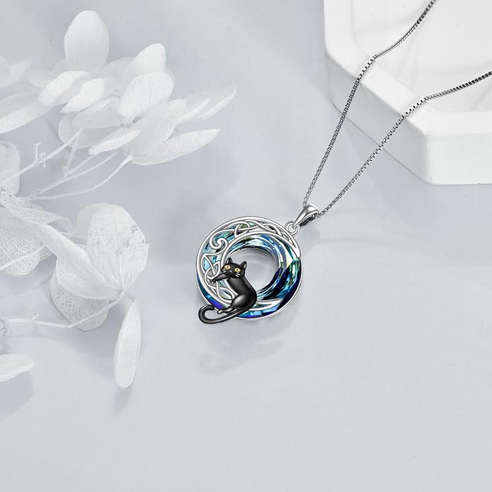 - 😻【Cat Gifts for Cat Lovers】Black cats are known as guardians, a symbol of luck and mystery, a cozy black cat lying on the Celtic moon radiates endless charm, blue crystals emit brilliant light, no matter where you are, this Black Cat Crystal Moon Necklace attracts the attention and admiration of others. It is not only a piece of jewelry, but also a unique work of art that shows off your taste and personality.