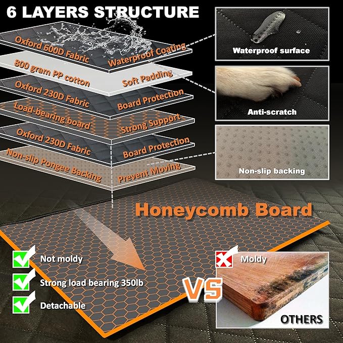 - 【Waterproof, Anti-Scratch, Non-slip Material】The backseat cover for dogs in car is made of waterproof, sturdy and anti-scratch material,making it easy to clean after getting dirty. The back seat extender for dogs is designed with indelible light color non-slip pongee material on bottom side, ensuring that the car seat covers for dogs do not move around during use and light color at the bottom prevents color fading on the seat.