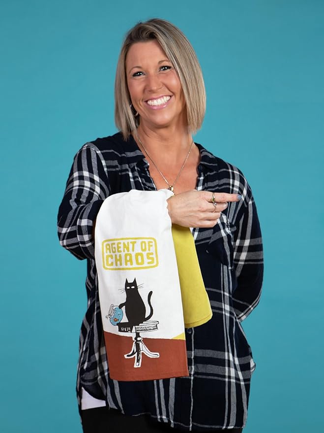 Blue Q Funny Dish Towel, The Cat - Agent of Chaos. 100% Cotton, Screen-Printed in Rich Vibrant Colors, 28" x 21"