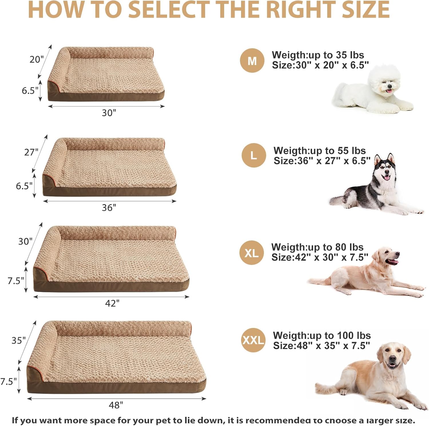 • SIZE(DOG BEDS FOR MEDIUM DOGS): The dimensions of this pet bed are 30“ x 20" x 6.5". Medium dog beds for Small and medium dogs up to 35 lbs. If you want more space for your pet, it is recommended to choose a larger size dog bed.