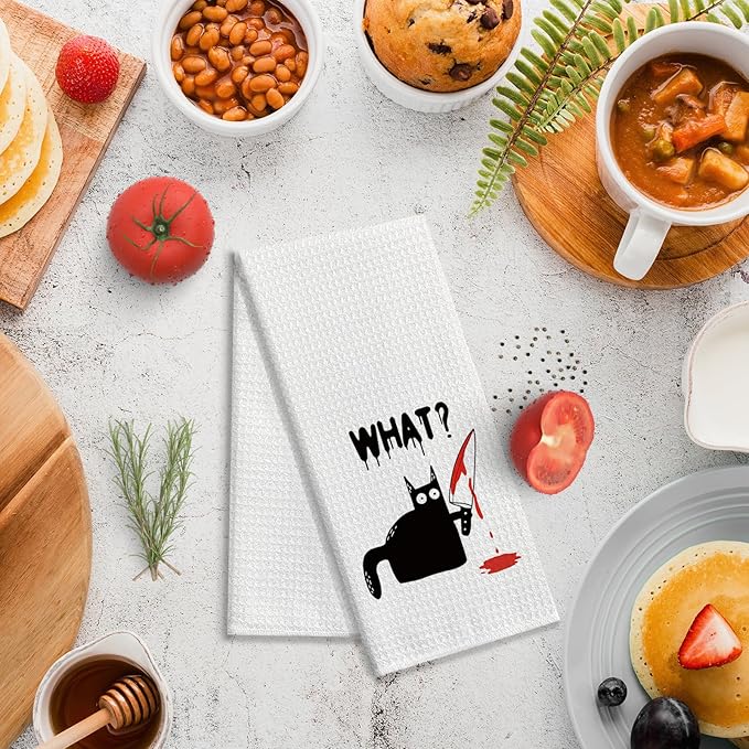 zcyhtqp Funny Kitchen Towels with Sayings - Cat Lover Dish Towels for Kitchen Decor & New Home Housewarming Gift