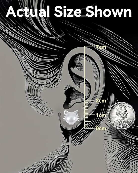 - 7mm Freshwater Pearl Cat Earrings - Elegant Style for Any Look, Ideal Gift Choice