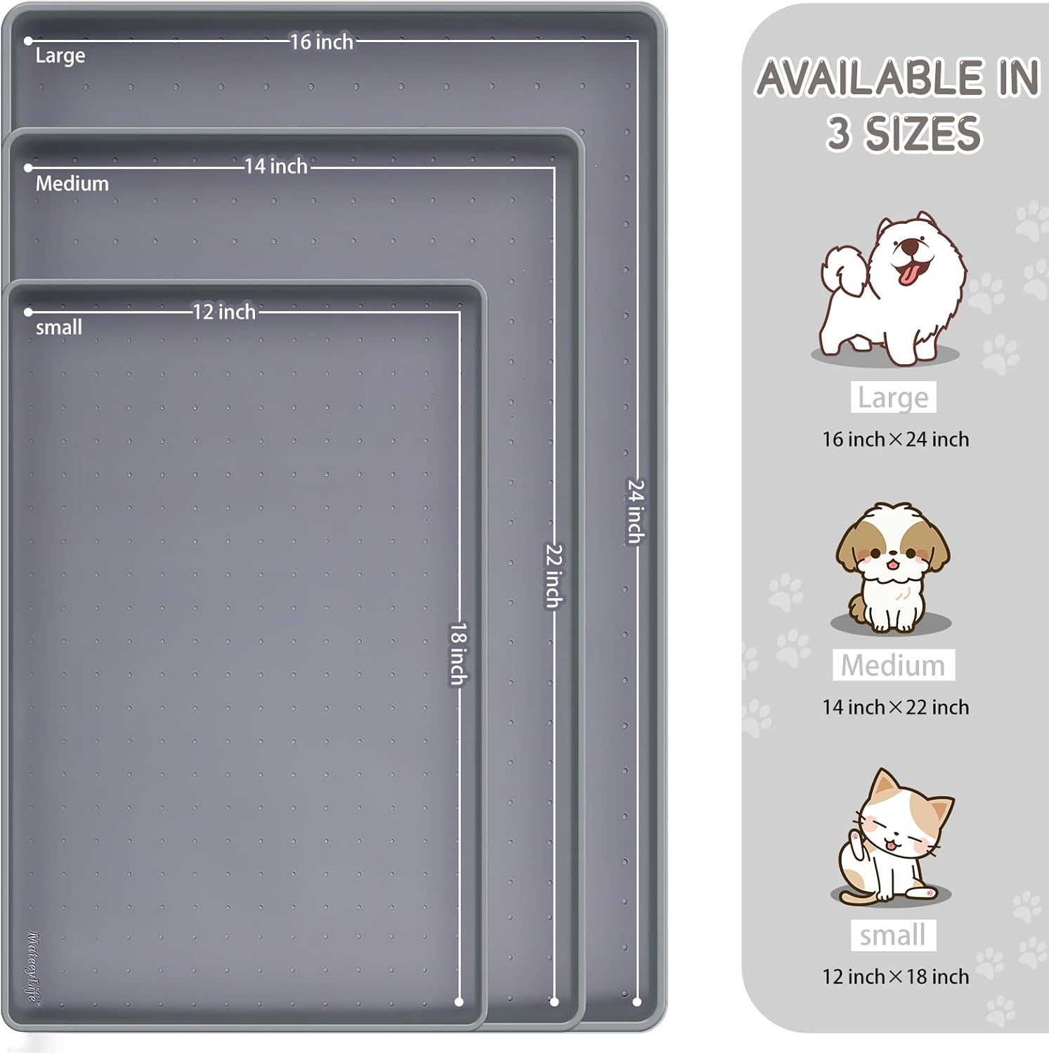 - Multiple Sizes & After-Sales: Service Our cat feeding mat and dog dish mats for floors waterproof come in 3 sizes and 8 colors, making them ideal for pets of all sizes. The dog food trays for floors can also be used as a rubber shoe mat tray, under sink mat, under sink tray, cat litter mat and litter box mat. If you have a chewer, please supervise him/her while using the cat bowl mat and dog bowl mat waterproof. Any issues, please feel free to contact us