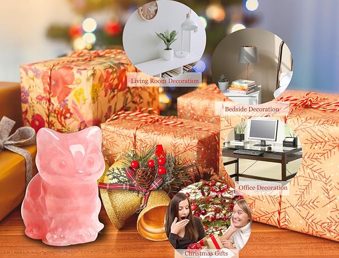 - [Specification]: Size:length:1.14inch,width:1.22inch,High:1.5 inch. Material: Natural Rose Quartz crystal stone, Package: 1PC crystal cat figurines, packed with gift box, ready for gift.The suitable size is easy to carry, put it in your pocket .