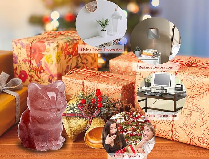 - [Specification]: Size:length:1.14inch,width:1.22inch,High:1.5 inch. Material: Natural Strawberry Quartz crystal stone, Package: 1PC crystal cat figurines, packed with gift box, ready for gift.The suitable size is easy to carry, put it in your pocket .