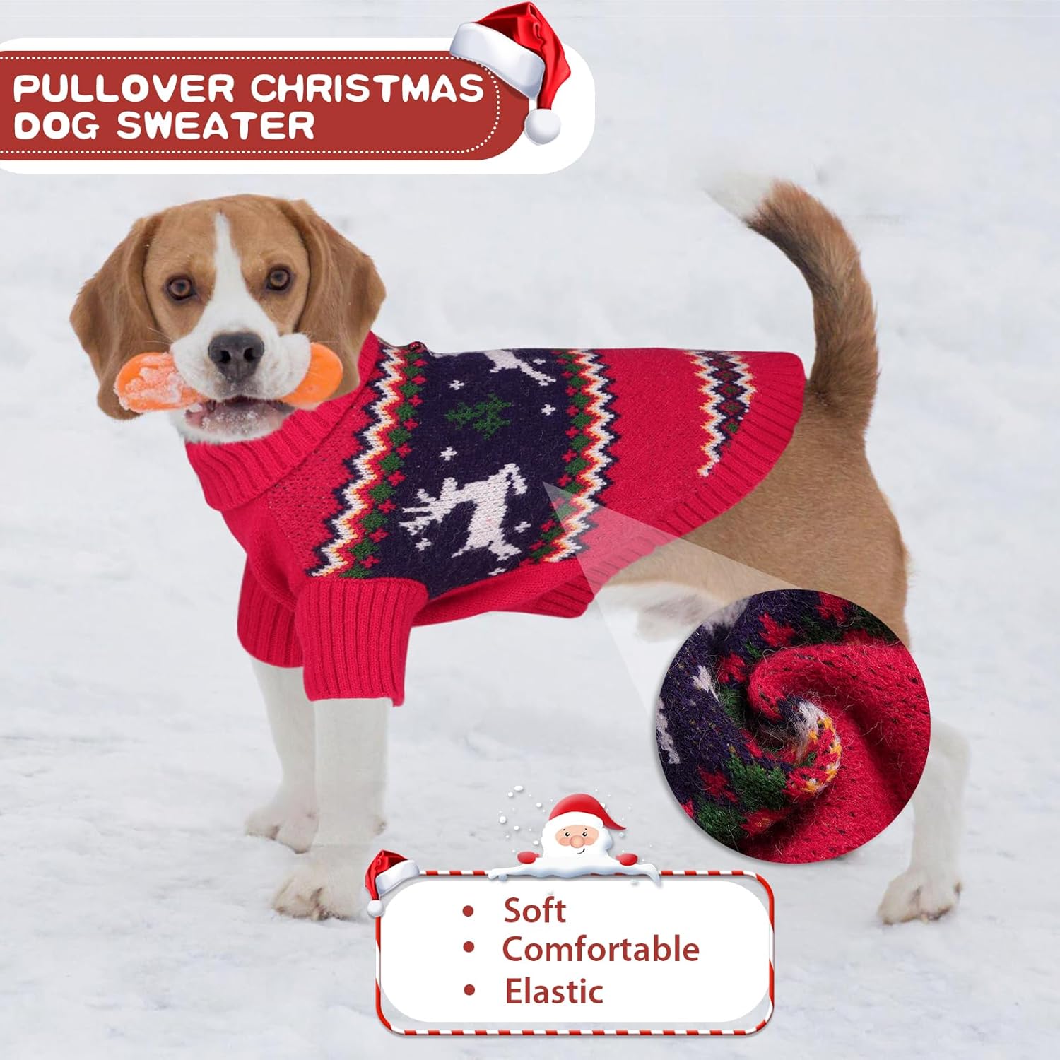 - Thick Christmas Knitted Sweater: The turtleneck pullover sweater for dogs is made of high-density acrylic yarn, which is comfortable, soft, warm and easy to care for. A red dog christmas sweater is the cutest winter outfit for your dog.