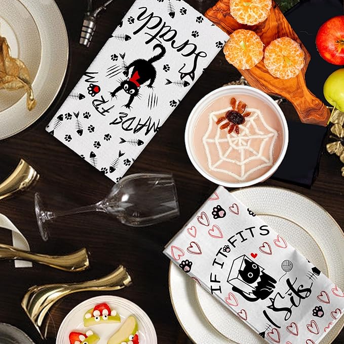- DECORATIVE CAT TOWEL - These cat hand towels for cat lovers are perfect for daily hand drying, washing dishes or utensils, wrapping delicate items, also can be a funny and cute addition to your kitchen decor.