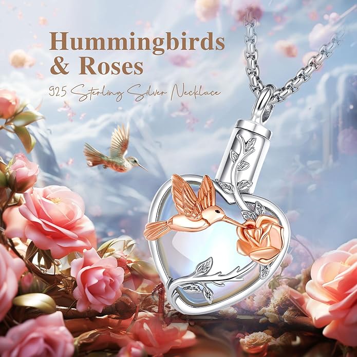 - DESIGN CONCEPT: The hummingbird is a symbol of beauty and freedom, and the life cycle of the hummingbird is closely linked to the opening and withering cycle of the flower, which is also related to the cycle of life. Combining the hummingbird pattern with the urn pendant, it represents the hope for the peace and release of the soul of the deceased relative, the belief in the eternal cycle of the soul of the deceased relative, and the remembrance of the good times in the life of the deceased.
