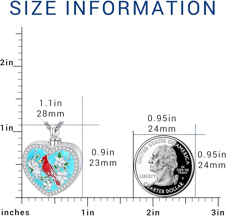 - Cardinal necklace for ashes cremation keepsakes memorial jewelry, safe and reliable, each urn pendant necklace comes with funnel and funnel pin, large space design, you can easily fill ashes inside - it is size-able enough to hold a amount of ashes.