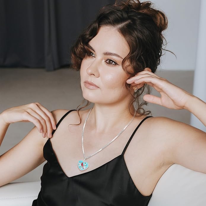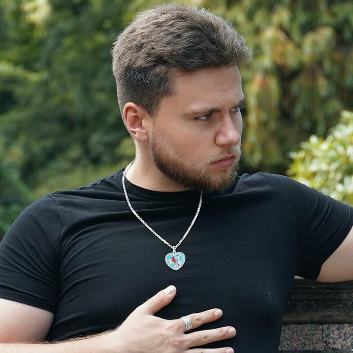 - Accentuate your cherished memories with this heart-shaped Cardinal urn necklace for ashes. The heartfelt phrase "Forever in my heart" is delicately engraved on it. Made of 925 sterling silver, it features a Turquoise, adorned with shimmering Swarovski crystals, adding an extra touch of beauty to your lasting remembrances.