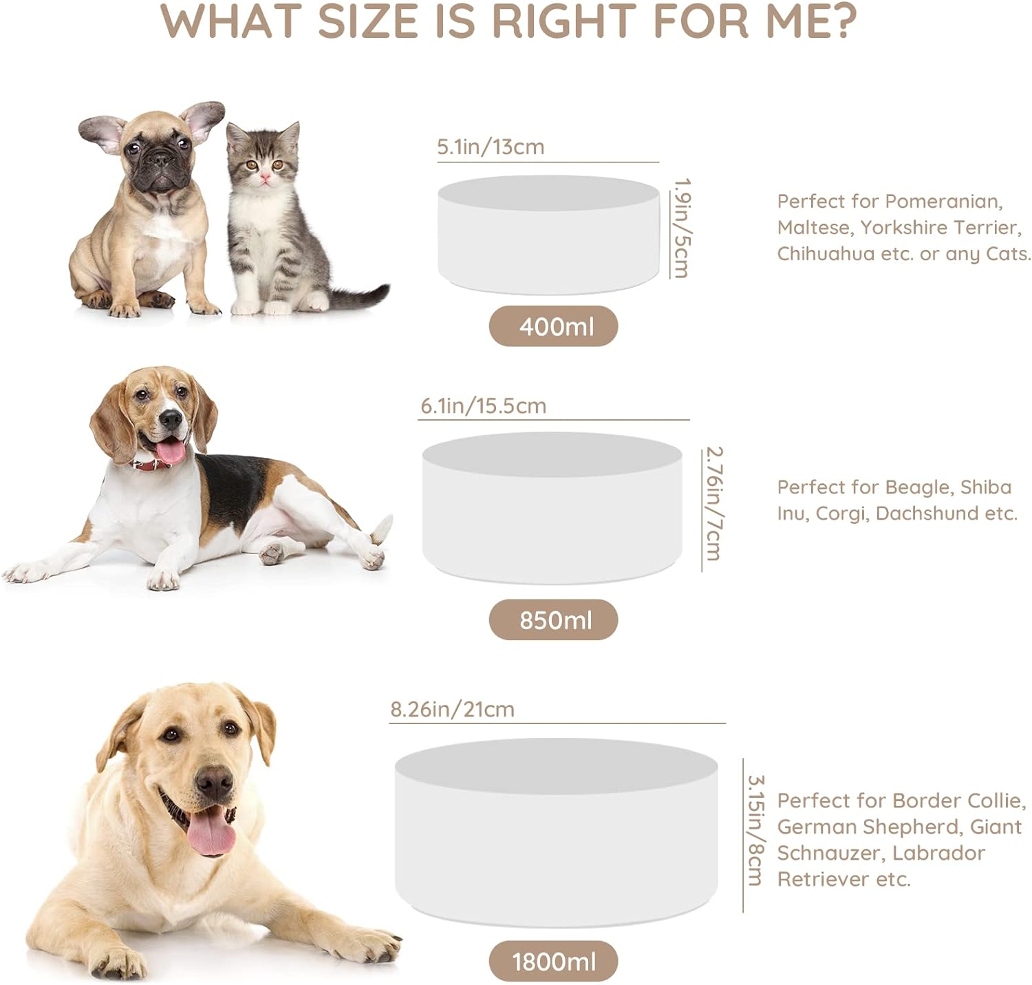 - [Capacity]:7.6 cups(1800ml, 60 Fluid Ounces) capacity of each single bowl, perfect for different breeds of kittens and dog who needs diet control due to the weight