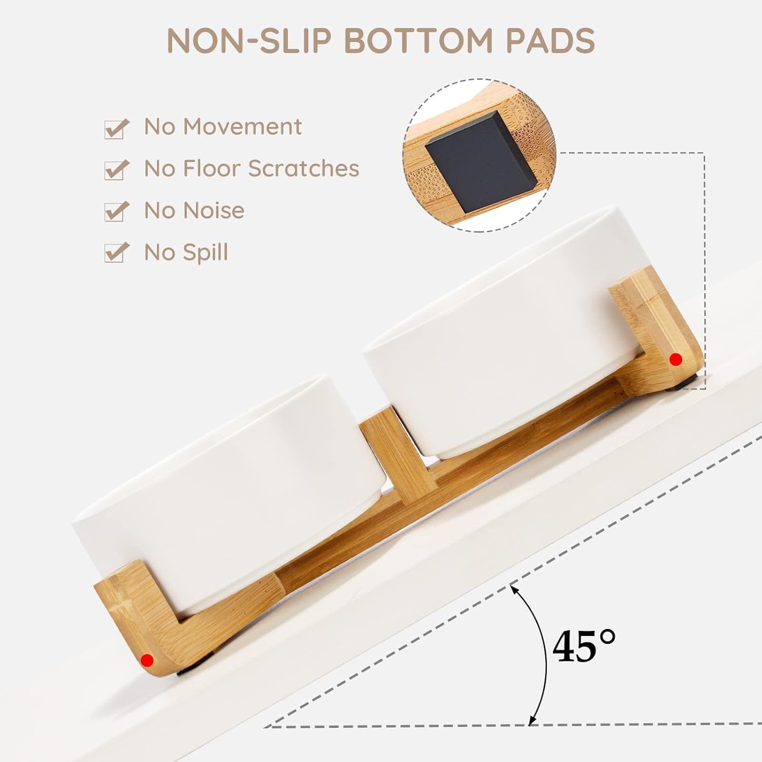 - [Double Bowl Design]:One dog bowl for food and one for water, Each ceramic cat bowl has a Unique wooden stand, raising the dishes closer to your pet for more comfortable eating