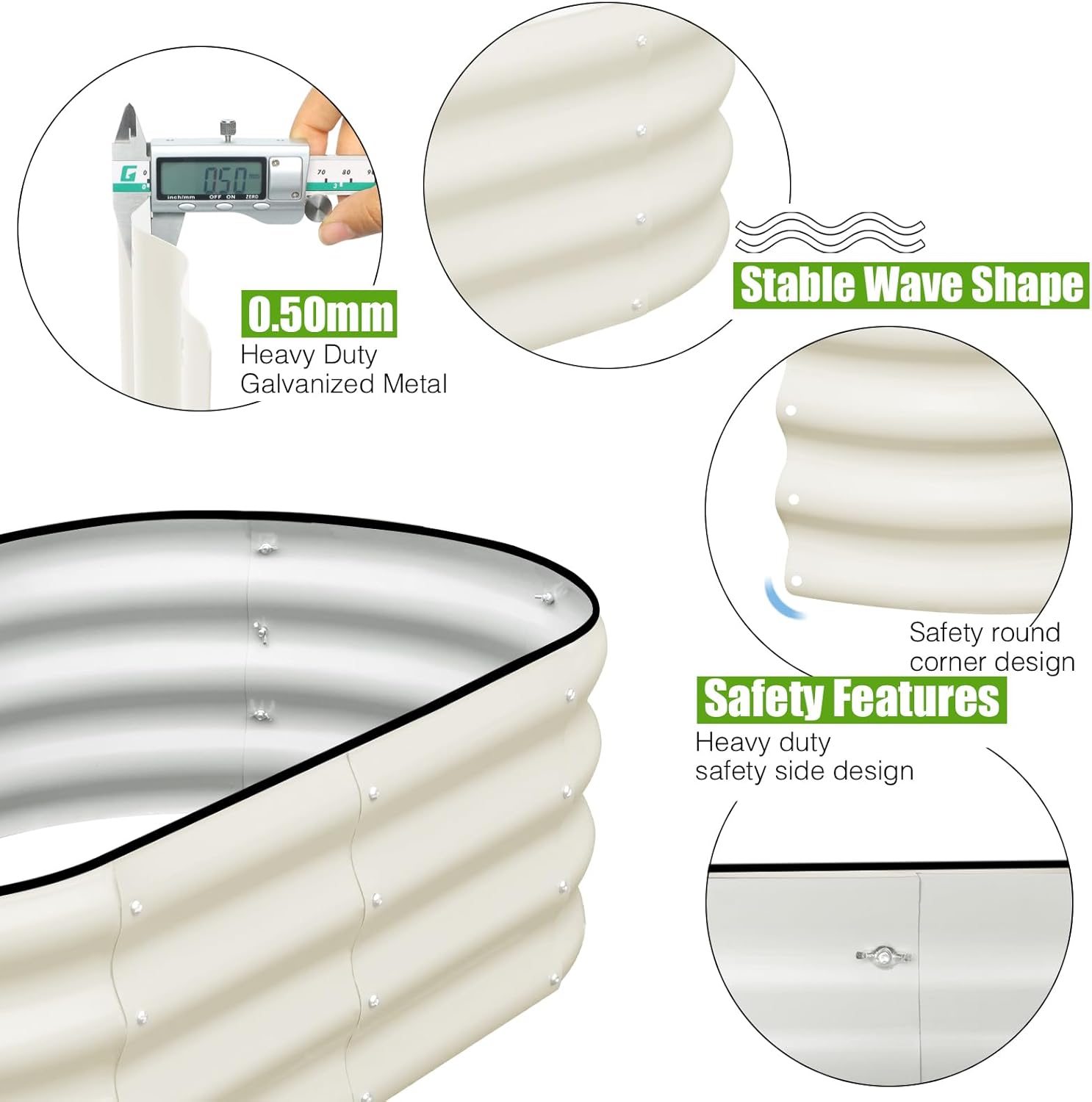 SnugNiture Galvanized Raised Garden Bed Outdoor, 2 Pcs 4x2x1ft Oval Metal Planter Box for Planting Plants Vegetables, White