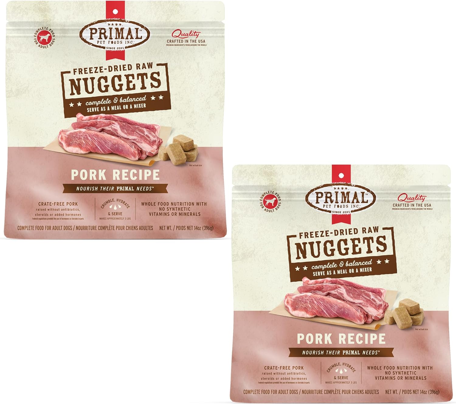 Primal Freeze Dried Raw Dog Food Nuggets, Pork, Complete & Balanced Meal, Also Use as Topper or Treat, Premium, Healthy, Grain Free, High Protein Raw Dog Food, 14 oz (Pack of 2)