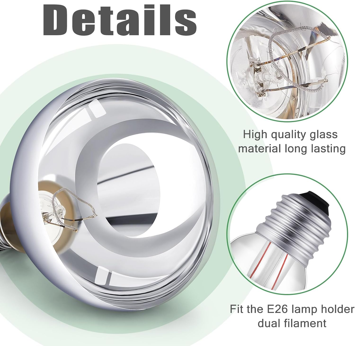 - Wide Applications: these incandescent light bulbs can provide radiant heat, which is suitable for most occasions, such as animal breeding insulation, food insulation, bathroom insulation, and so on; They are also suitable for reptile breeding, such as turtles, sea turtles, lizards, hermit crabs, and so on; The heat lamp bulbs are odorless and safe to use, ensuring that you can provide a warm environment for your pets without bad effects