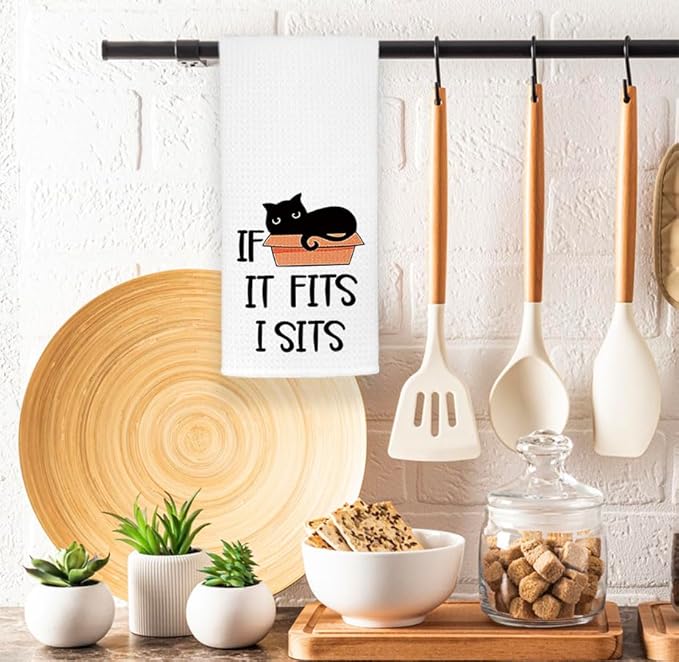 EXUQO Cat Kitchen Towels - Decorative Hand Towels for Kitchen, White Cat Kitchen Decor for Housewarming Gift
