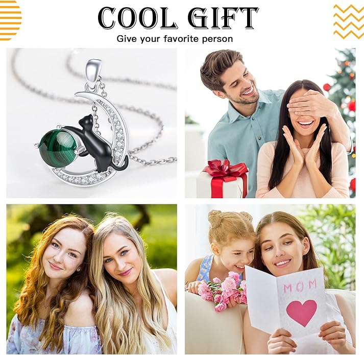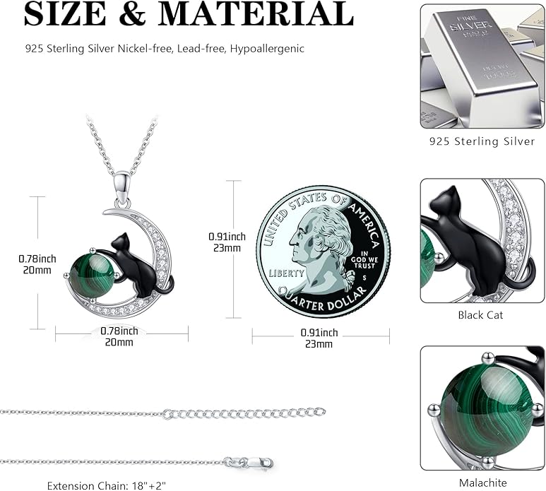 - 【Material】 The black cat necklace is made of 925 sterling silver with nature malachite, nickel-free, lead-free, cadmium-free and hypoallergenic, especially suitable for people with sensitive skin.