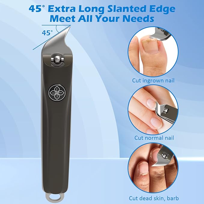 - Complete nails Care Set: This nail clippers set includes a large curved edge toenail clipper, a small curved edge fingernail clipper, and a slant edge ingrown nail clippers. It covers all your needs for toenail, thick nails, ingrown nails, and fingernail trimming.