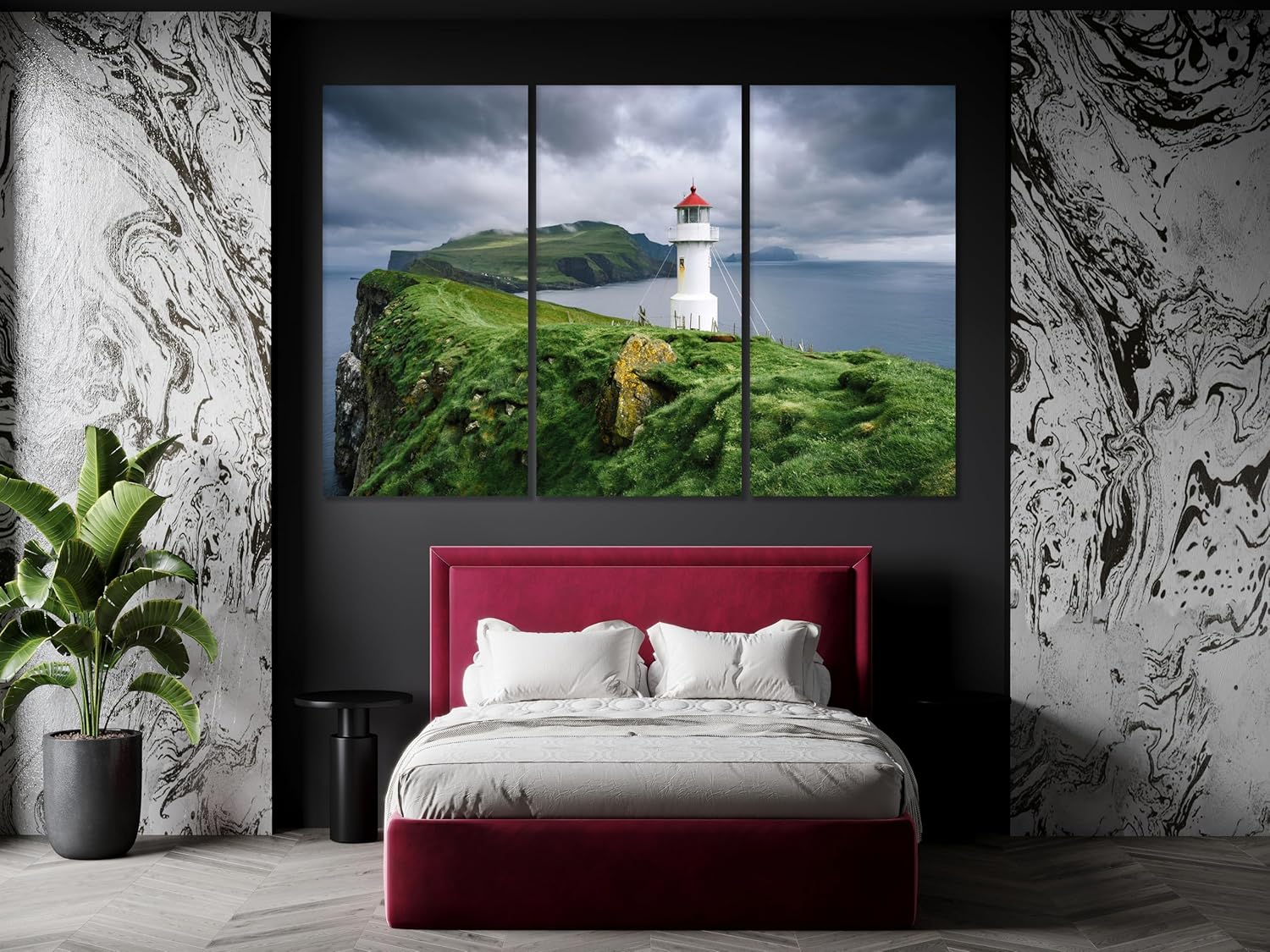 Nature Wall Art Prints - Ocean Forest Mountain Lake Canvas Landscapes - Small to Extra Large Living Room Bedroom Kitchen Bathroom Décor (Stormy Sky Lighthouse, 20L" x 30W")