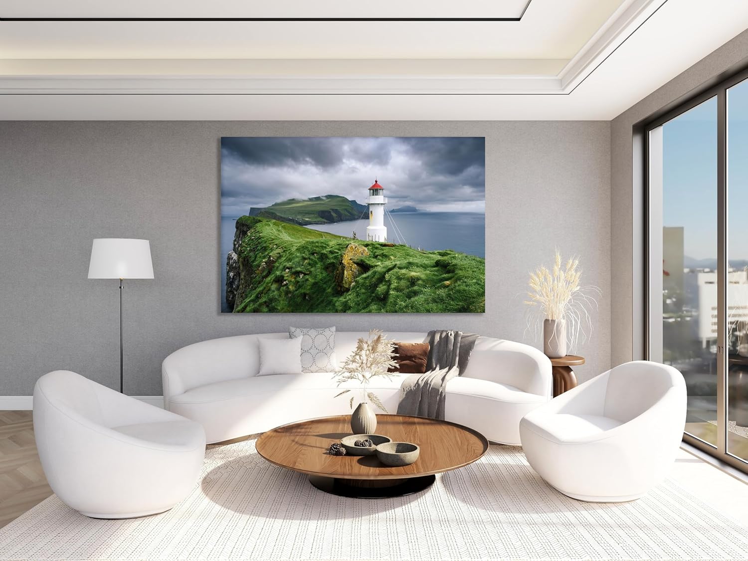 Nature Wall Art Prints - Ocean Forest Mountain Lake Canvas Landscapes - Small to Extra Large Living Room Bedroom Kitchen Bathroom Décor (Stormy Sky Lighthouse, 35L" x 53W")