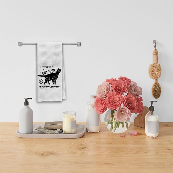 Dibor Cat Kitchen Towels, Cat Hand Towels for Cat Lovers Dish Towels Dishcloth, It s Not Cat Hair It s Kitty Glitter Cloth Hand Towels Tea Towels for Bathroom Kitchen, Cat Lover Gifts, 16x24 Inches
