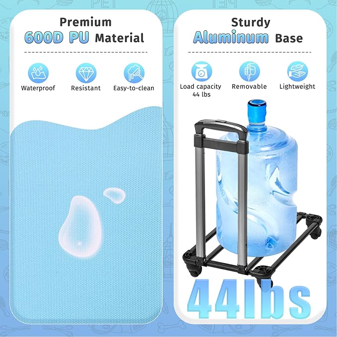 - Designed for Travel: The rolling cat carrier with wheels allows you to easily handle long journeys, shopping, or walks, bidding farewell to shoulder fatigue and arm soreness! With a detachable aluminum chassis, a 4-level extendable dual-bar handle, and 2 front wheels are 360° silent universal wheels, 2 rear wheels are fixed wheels to increase stability (all 4 wheels are removable), sparing your pet from bumps on the journey.