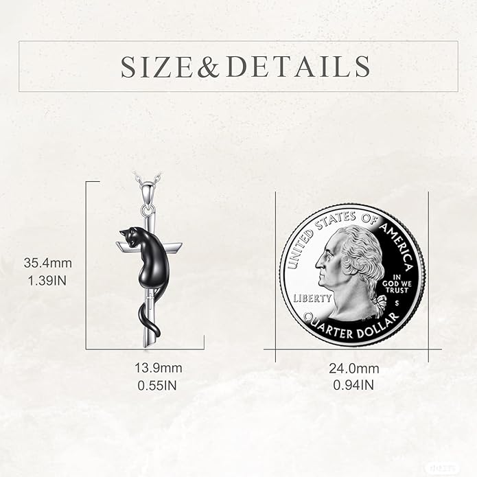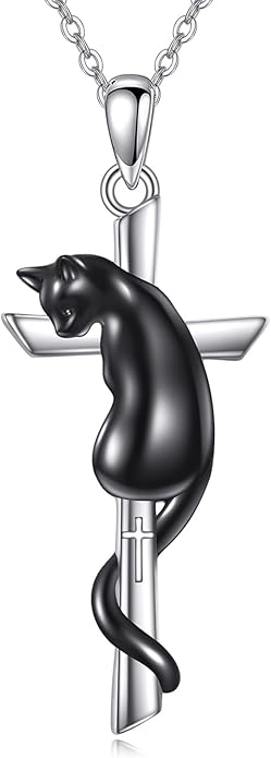 - ♡ This cross necklace adds the element of a black cat. The mysterious and elegant black cat adds the finishing touch to this necklace. This necklace is crafted from 925 sterling silver.