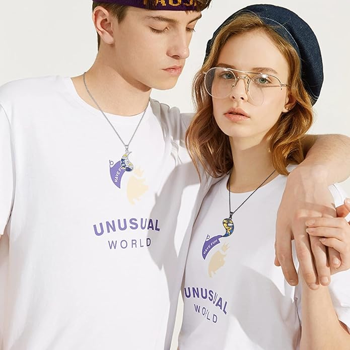 - Fun Skeleton Necklace: This interesting yin yang matching necklace combines waves and skulls as elements, with a unique design and rich details. This yin and yang skeleton surfing necklace jewelry is suitable for family and friends who like to surf
