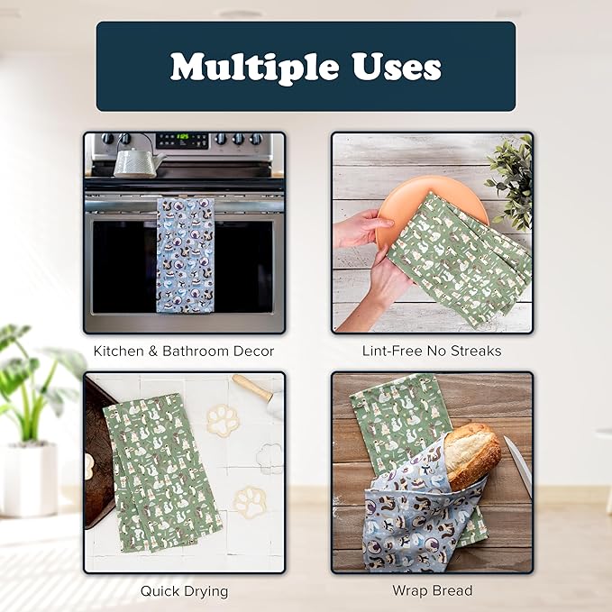 - FASTER DRYING, LESS EFFORT, MORE FUN: Experience higher absorbency that ensures swift and efficient drying. These fun Kitty Comforts cat decor kitchen towel sets are designed to make your kitchen tasks faster and more enjoyable. Whimsical designs by a NY mom show off snuggling cats and kittens in the kitchen make great cat gifts for cat lovers, cat lover gifts for women and men and anyone who loves cooking or cats!