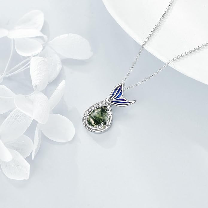 - 🧜♀️Mermaid Moss Agate Necklace--The mermaid is the daughter of the sea, she only shed tears when she was born and died. It means the owner has beautiful love, or loves the ocean and mermaids.