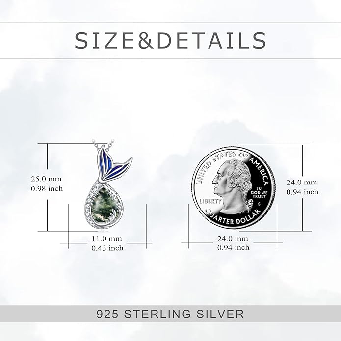 - 🧜♀️Excellent Material--Made of 925 sterling silver and moss agate. Exquisite craft makes mermaid teardrop jewelry more durable.