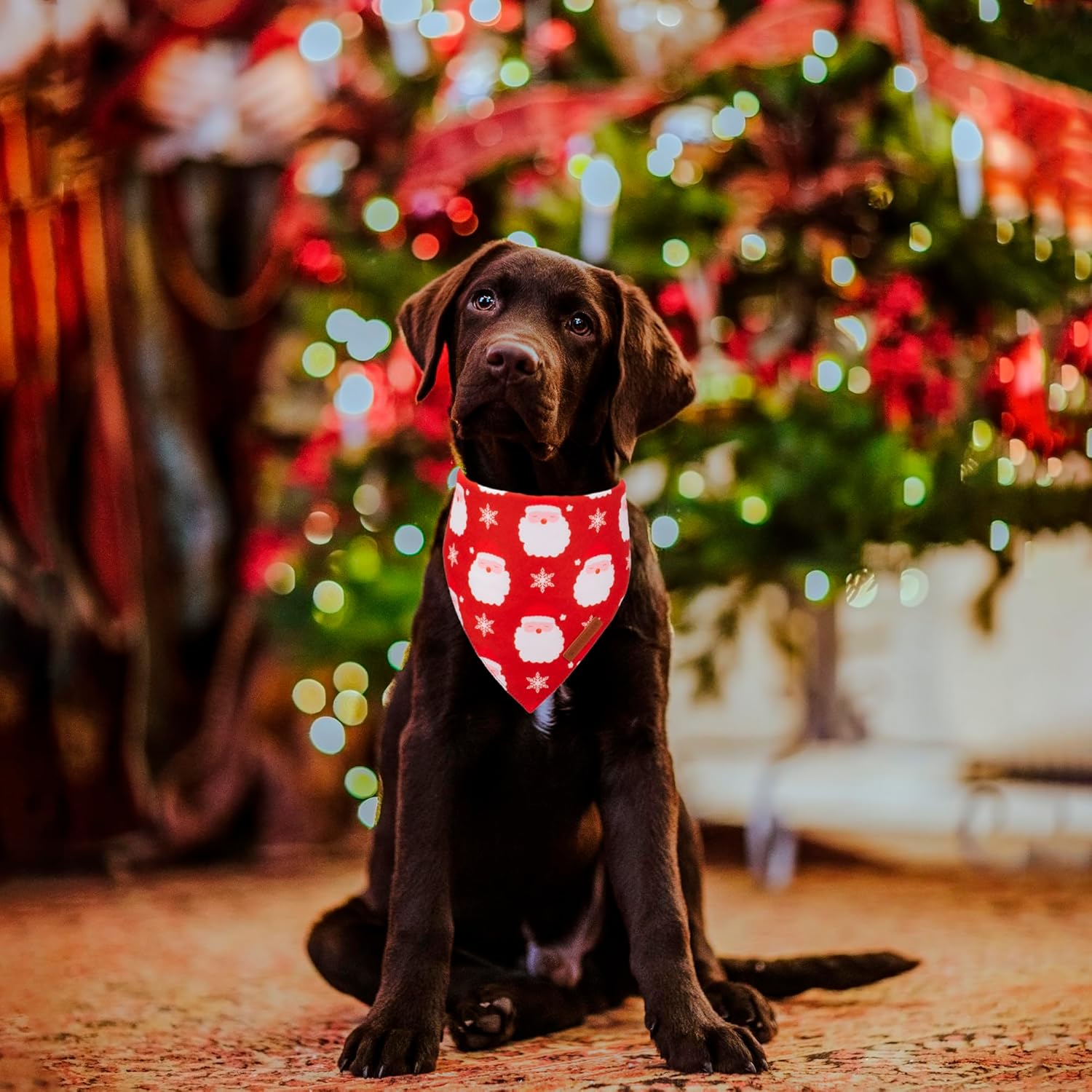 ADOGGYGO Christmas Dog Bandanas 2 Pack, Santa Deer Pattern Pet Xmas Scarf Bib, Premium Durable Fabric, Pet Christmas Bandanas for Medium Large Dogs (Large)