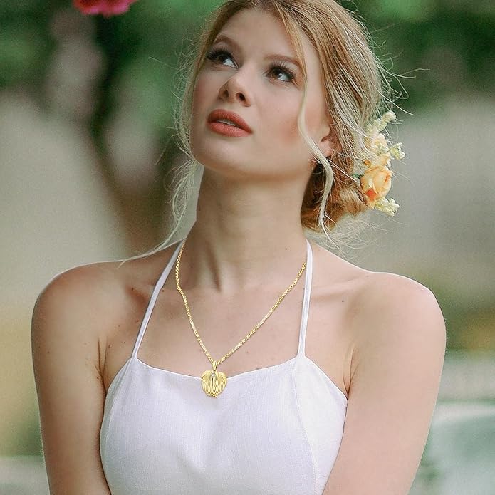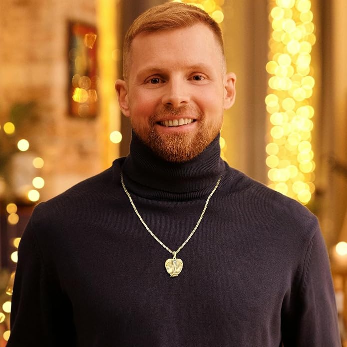 - This gold angel wing locket necklace is the perfect way to keep your cherished memories close to your heart. Crafted in 14K gold (925 sterling silver plated with 14K gold) with crystals, Engraving"Forever in my heart". the locket is designed in a heart shape with intricate angel wing details. It can hold 2 precious pictures inside, making it a perfect keepsake for your loved ones.