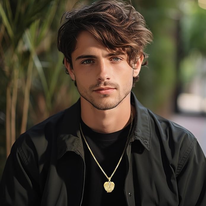 - This gold angel wing locket necklace is the perfect way to keep your cherished memories close to your heart. Crafted in gold (925 sterling silver plated with yellow gold) with crystals, Engraving"Forever in my heart". the locket is designed in a heart shape with intricate angel wing details. It can hold 2 precious pictures inside, making it a perfect keepsake for your loved ones.