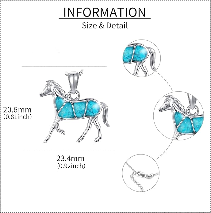 - π Size π Horse turquoise necklace:0.81*0.92 inch , Chain Length: 18 inch+ 2 inch extender. Ideal Horse jewelry for daughter, wife.
