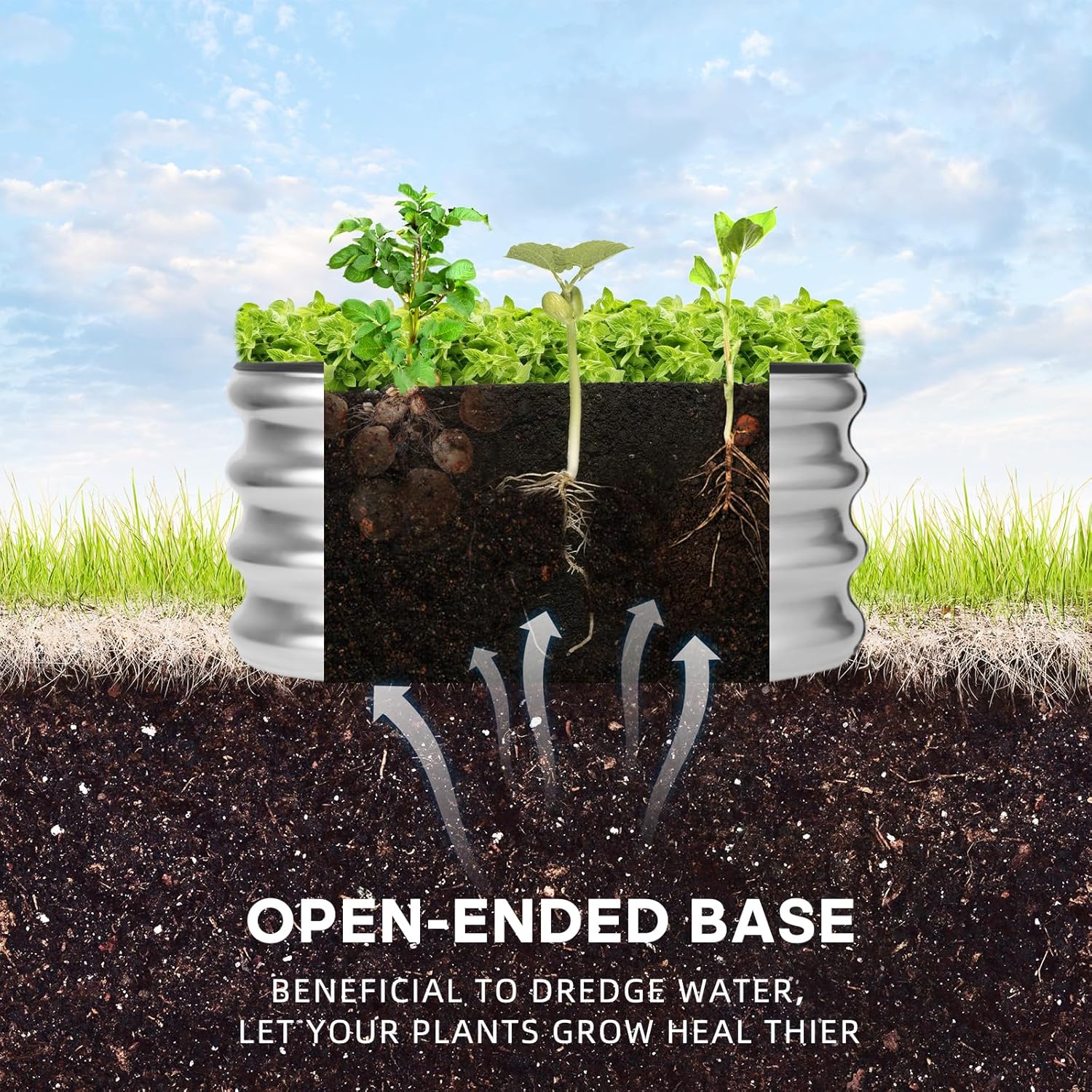 - Open base: This raised garden bed metal galvanized is designed with an open base, Sits on the ground garden bed which can effectively avoid water accumulation .