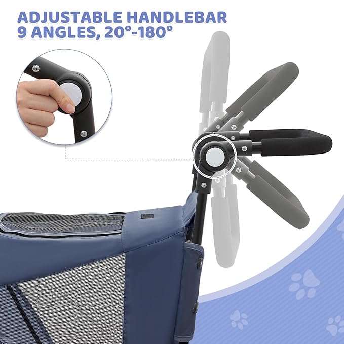 - Multi-position handle for ergonomic comfort: Adjustable handles accommodate people of different heights, with cushioned grips to reduce back strain during jogs or long walks, perfect for tall owners