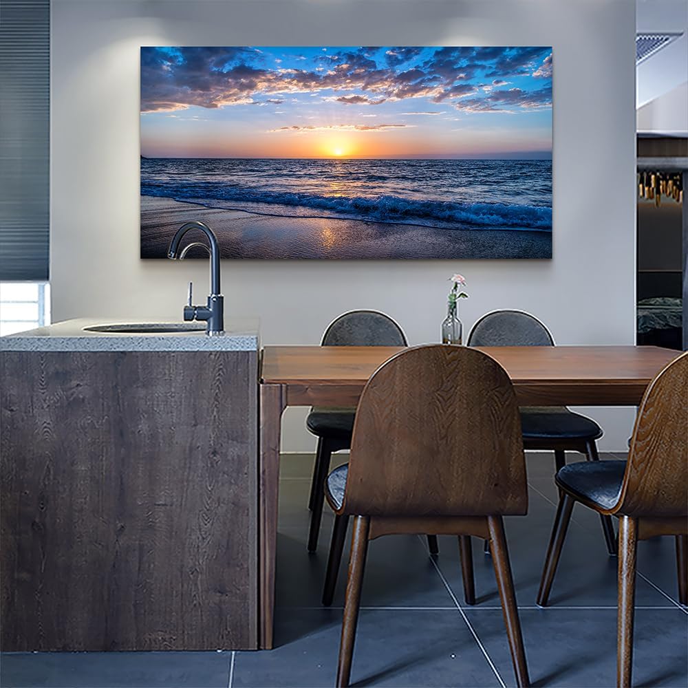 Lapremoly Large Canvas Wall Art For Living Room farmhouse Wall Decor For Office Ocean Wave Wall Paintings Blue Sea Beach Pictures Framed Ready To Hang Bedroom Decor Prints Posters Art 24X48 inch