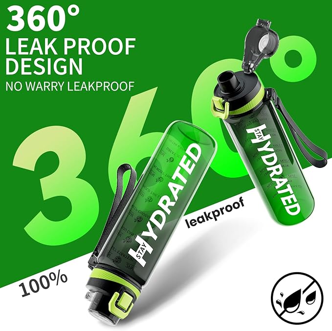 - Portable Fashion Design: The 32 oz/1 liter water bottles are suitable for all occasions and people. Whether it is men, women, girls or boys, it can be used in indoor and outdoor. Especially a HYDRATION WATER BOTTLE for school, gym, workout, hiking, cycling, and running! We come with a cleaning brush and nice packaging. Whether it is for personal use or as a gift, it is a good choice