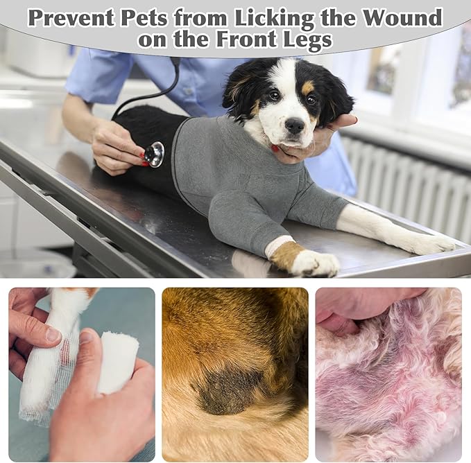 - PROTECT DOG LEGS:The dog recovery suit front legs can prevent pets from licking leg wounds, rashes, hot spots, allergies and infection. The dog sleeve for female and male pet ensures your dog's body balanced and stable, and the recovery suit for dogs prevents any damage to the dog's joints.