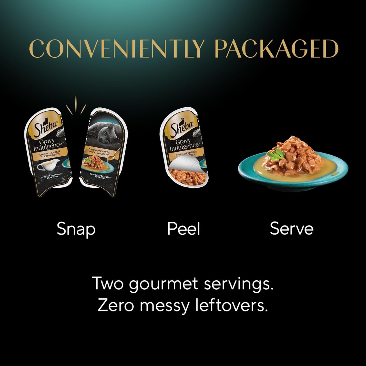 Sheba Gravy Indulgence Adult Wet Cat Food Beef Entree and Chicken Entree in Extra Gravy Variety Pack, 2.6 oz. Twin-Pack Trays (12 Count, 24 Servings) (Pack of 2)