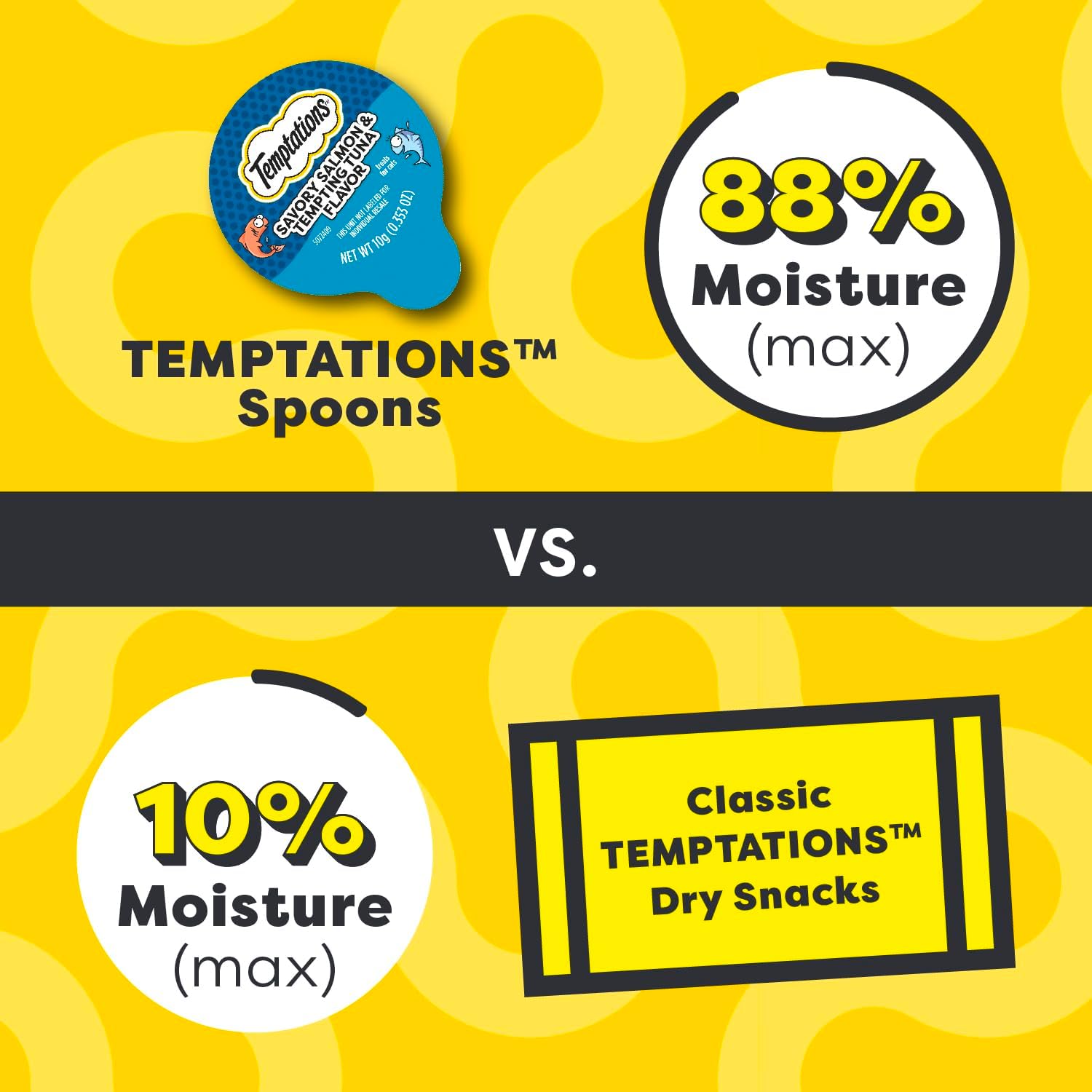 Temptations Lickable Spoons Adult Wet Cat Treat, Savory Salmon and Tempting Tuna Flavor, 8 Spoons, Pack of 12 (96 Total)