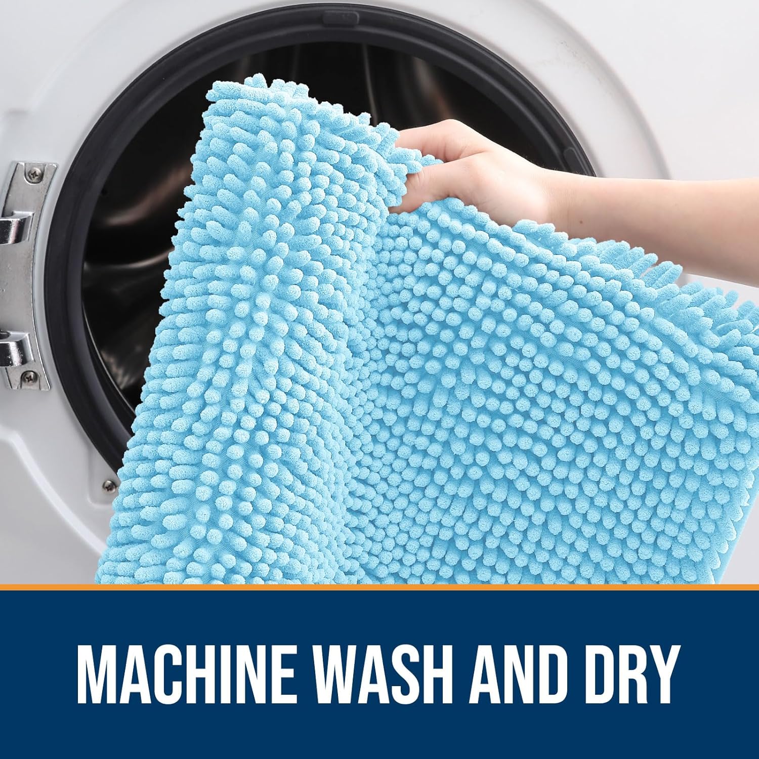 OLANLY Dog Door Mat for Muddy Paws 59x35, Absorbs Moisture and Dirt, Absorbent Non-Slip Washable Doormat, Quick Dry Chenille Mud Mat for Dogs, Entry Indoor Entryway Carpet for Inside Floor, Blue