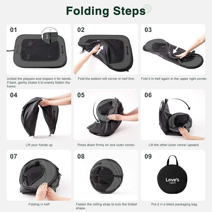 - Easy to Assemble and Store: The Portable Pet Play Pen comes along with a convenient carrying case that can easily store your playpen. Follow the instructions,you can assemble it in just 30 seconds. And it's also easy to fold back flat when not in use. Our lightweight portable pet playpen can be used indoors, outdoors, traveling, camping, etc.