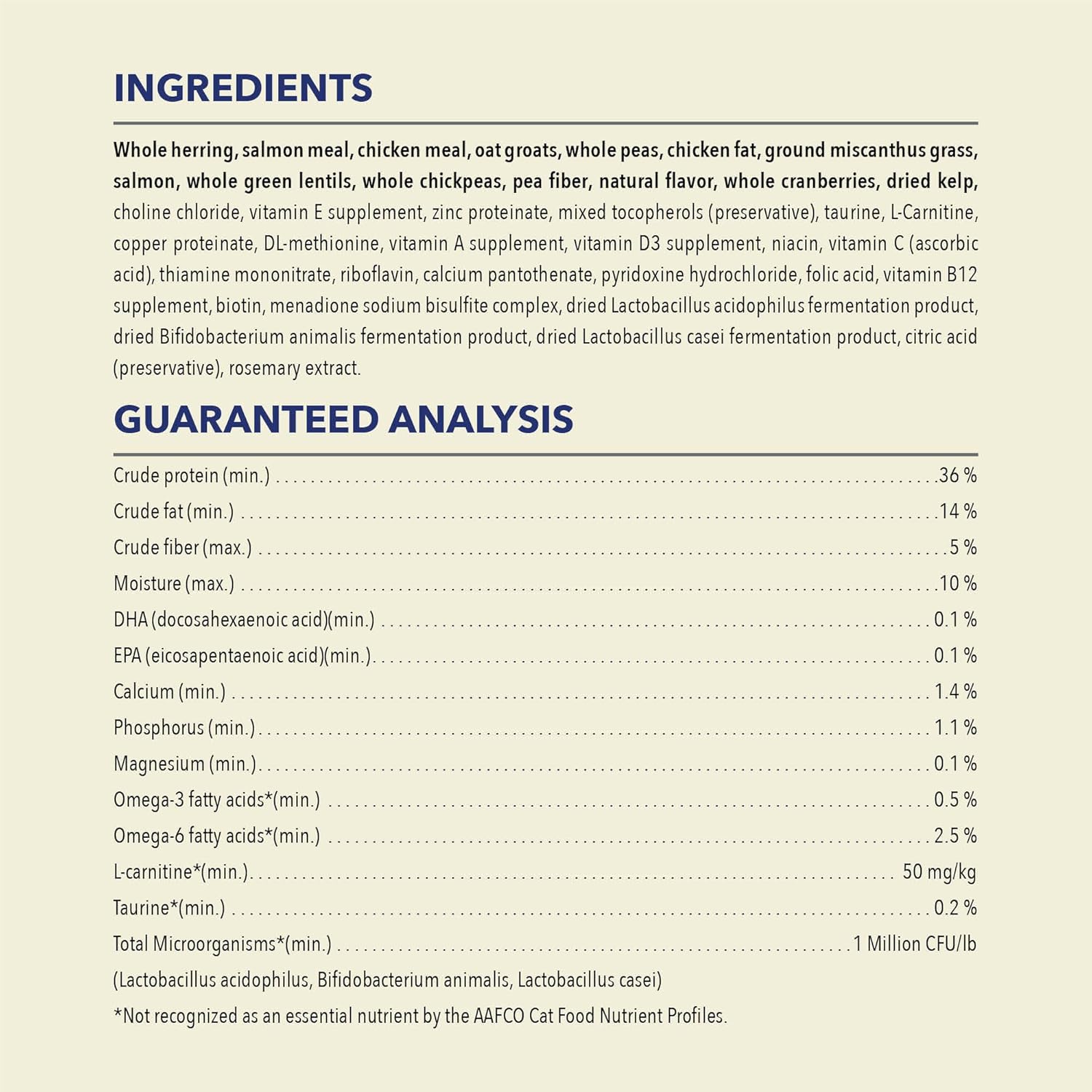 - This cat food is crafted with 65% animal ingredients*, including whole herring and raw salmon.