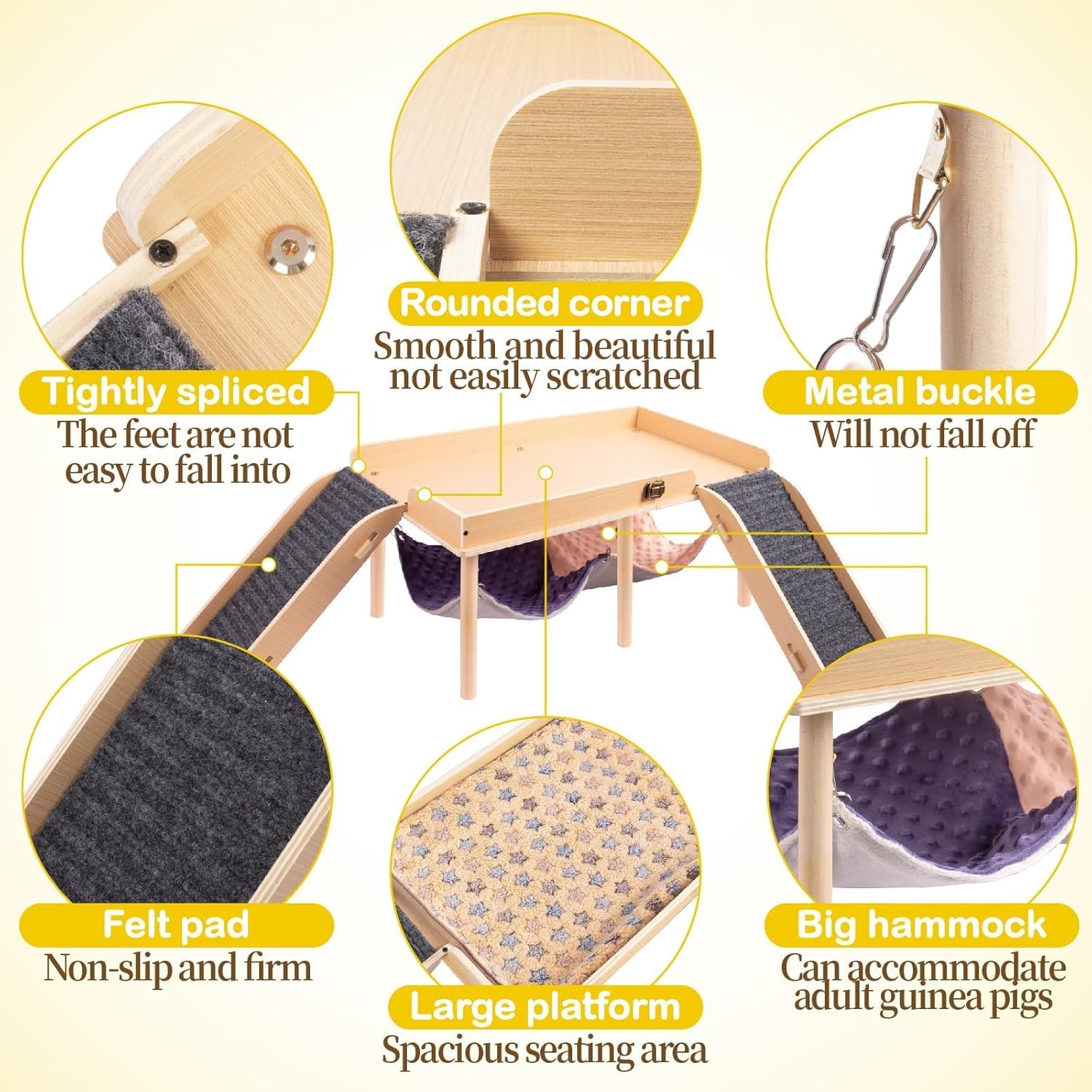 Enlarged Guinea Pig Hammock with Platform and Stairs,Wooden Foldable Piggies Hideout for Guinea Pigs Bunny Ferret Hamster Hiding Sleeping Activities 24L x 12W x 11H in(Double)