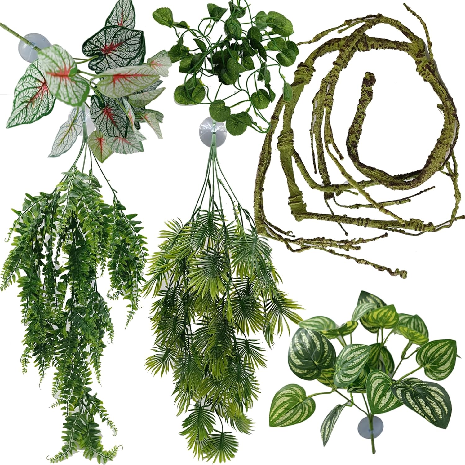 - 【Suitable for】Bearded dragons, lizards, chameleons, triceratops, tree frogs, geckos,crested gecko, baby iguanas, turtles, hermit crabs, snakes and other reptiles. The Reptile fake vine plants and bendable vine with leaves can decorate habitats also be used to decor household items.