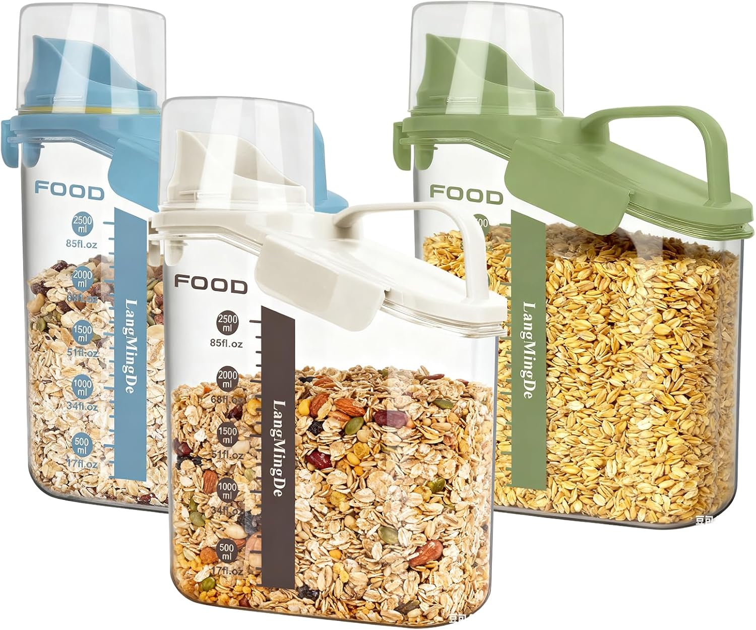 - 【BPA FREE】 Crafted from high-quality, food grade materials, these clear rice containers storage dispensers are designed to be safe for storing dry food. PACKAGE INCLUDES: 3 x Cereal Dispensers. Feel free to contact us if you have any questions.