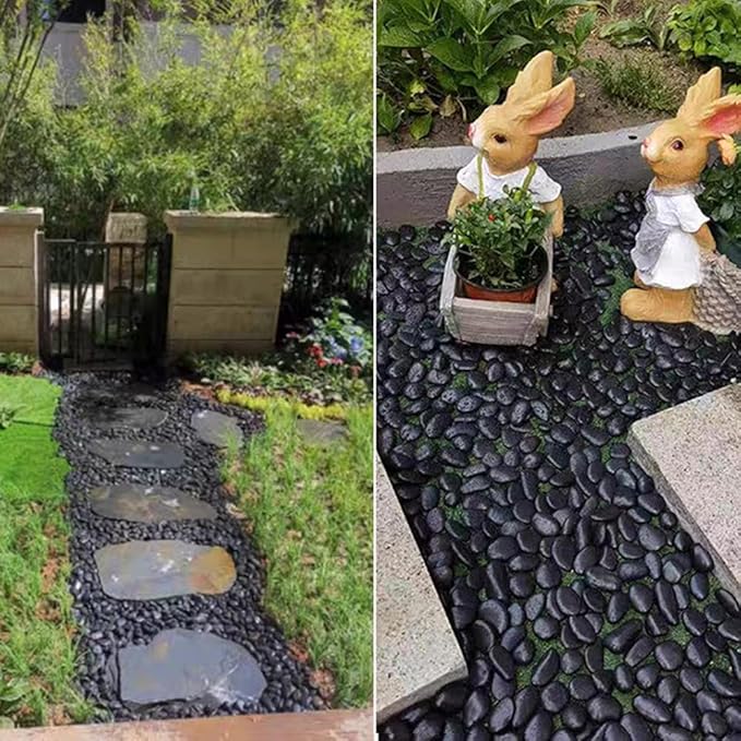 - Material: These black pebbles stones range in width approx from 0.8-1.6 inch, are scoured and polished by smooth river stones. Their surface are covered with wax to enhance color and shine, so you should take them with gloves